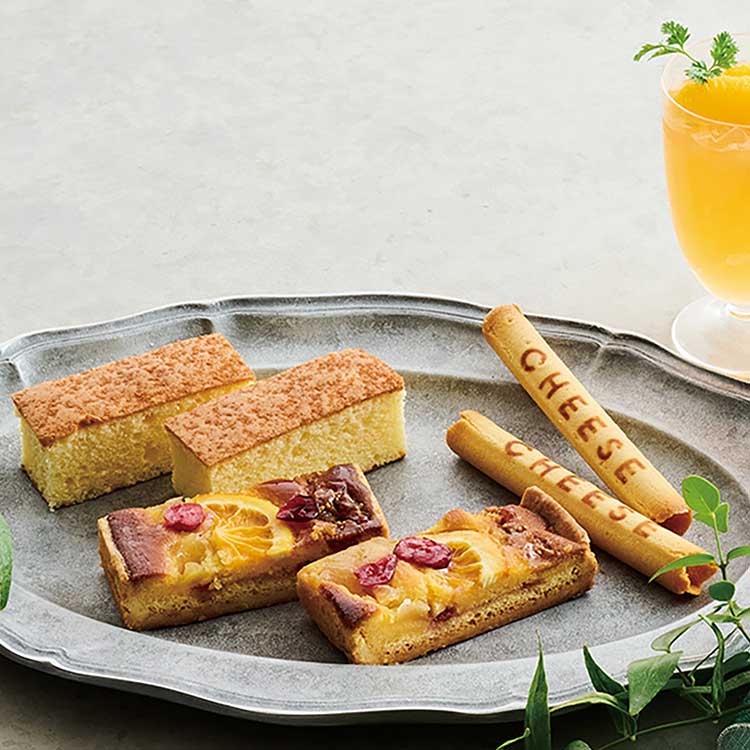 フルーツ果実をギュッと閉じ込めたのどごしの良いゼリーと、ロングセラーのチーズケーキ、フルーツの香り満載なタルトなど、多彩な味わいの詰め合わせです。
